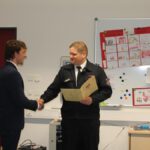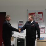 Die Beförderung von Timo Teichert zum Brandmeister übernahm der Wehrführer Michael Bungarz selbst.