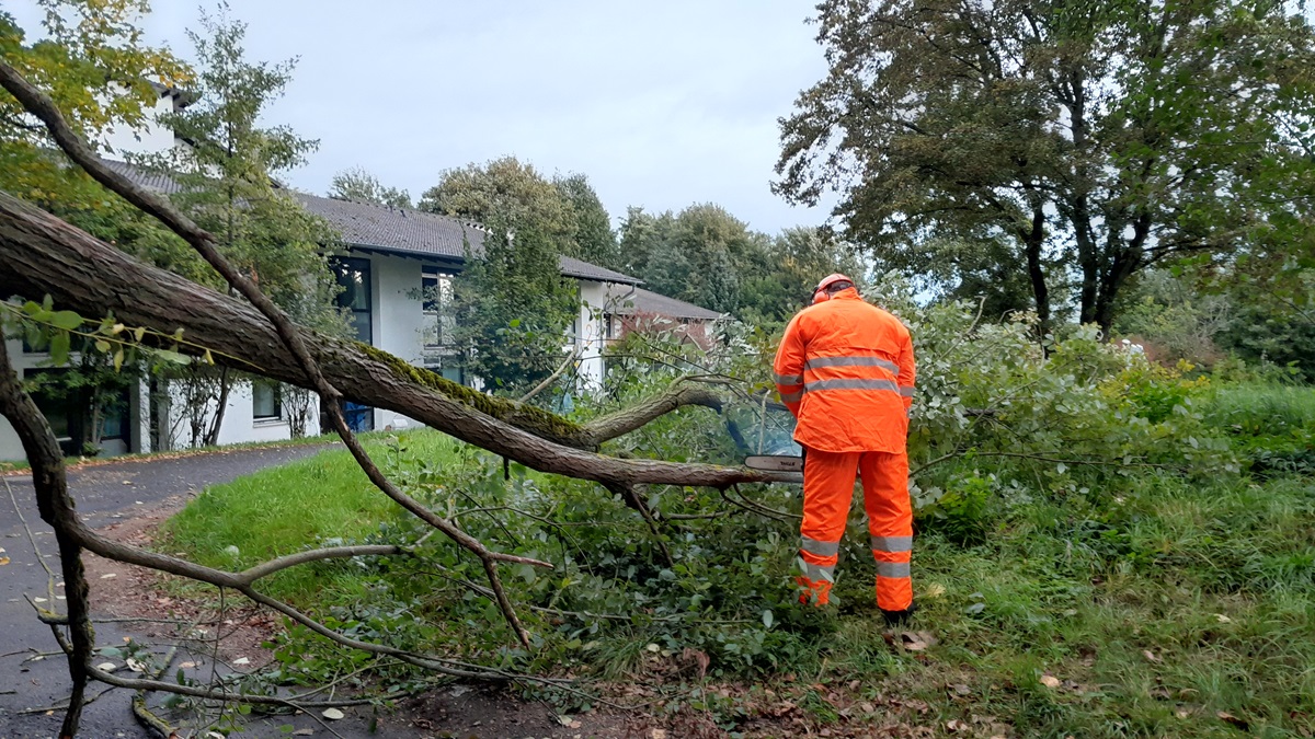 Am Samstagmorgen wurde die Löscheinheit Bockeroth zu einem Sturmeinsatz nach Stieldorf alarmiert. Ein Baum war auf die Zufahrtsstraße des Asylbewerberheims gestürzt. Der Baum wurde mit der Motorkettensäge gefällt und von der Straße geräumt.
