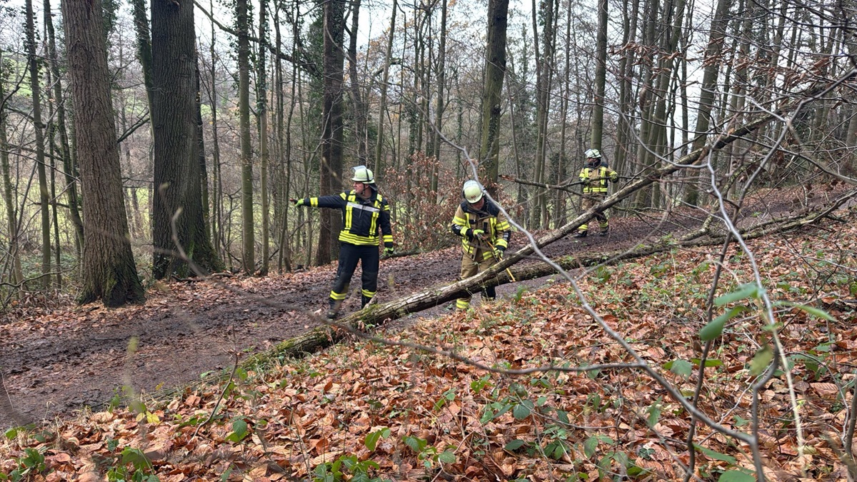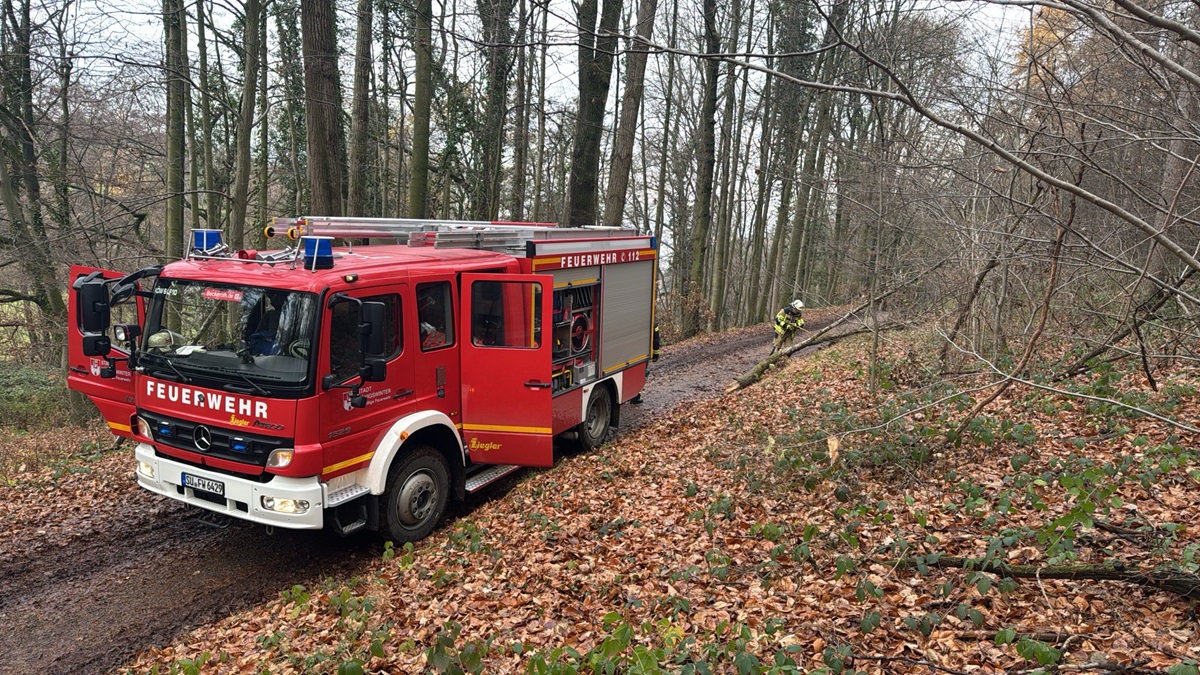 ← B3-BMA: Fehlalarm im Haus Schlesien TH1: Baum auf Straße Einsatz 66/2025 am 04.12.2025 um 10:40 Uhr in Oelinghoven. Feuerwehr entfernt umgestürzten Baum von Waldweg.